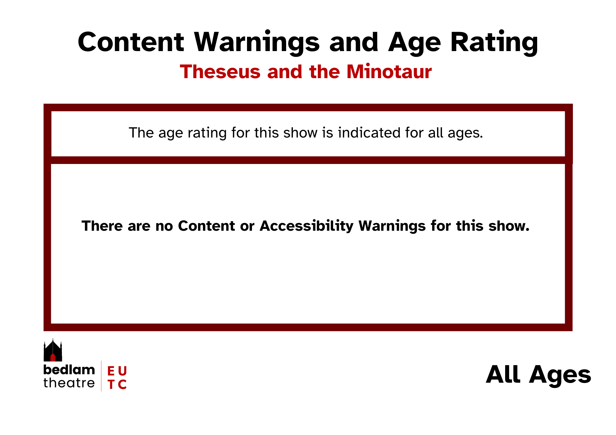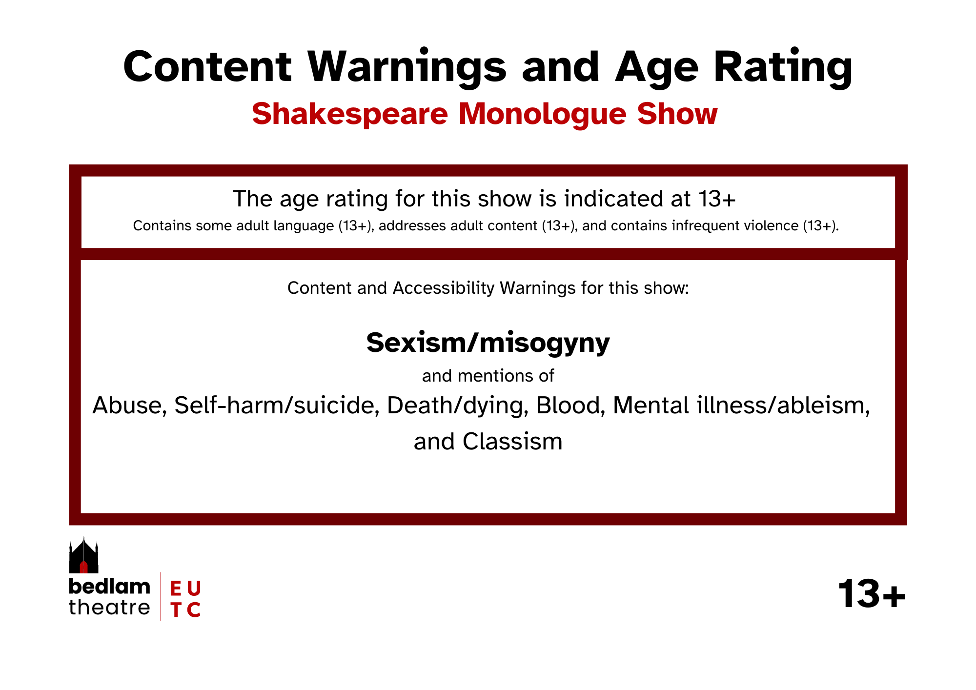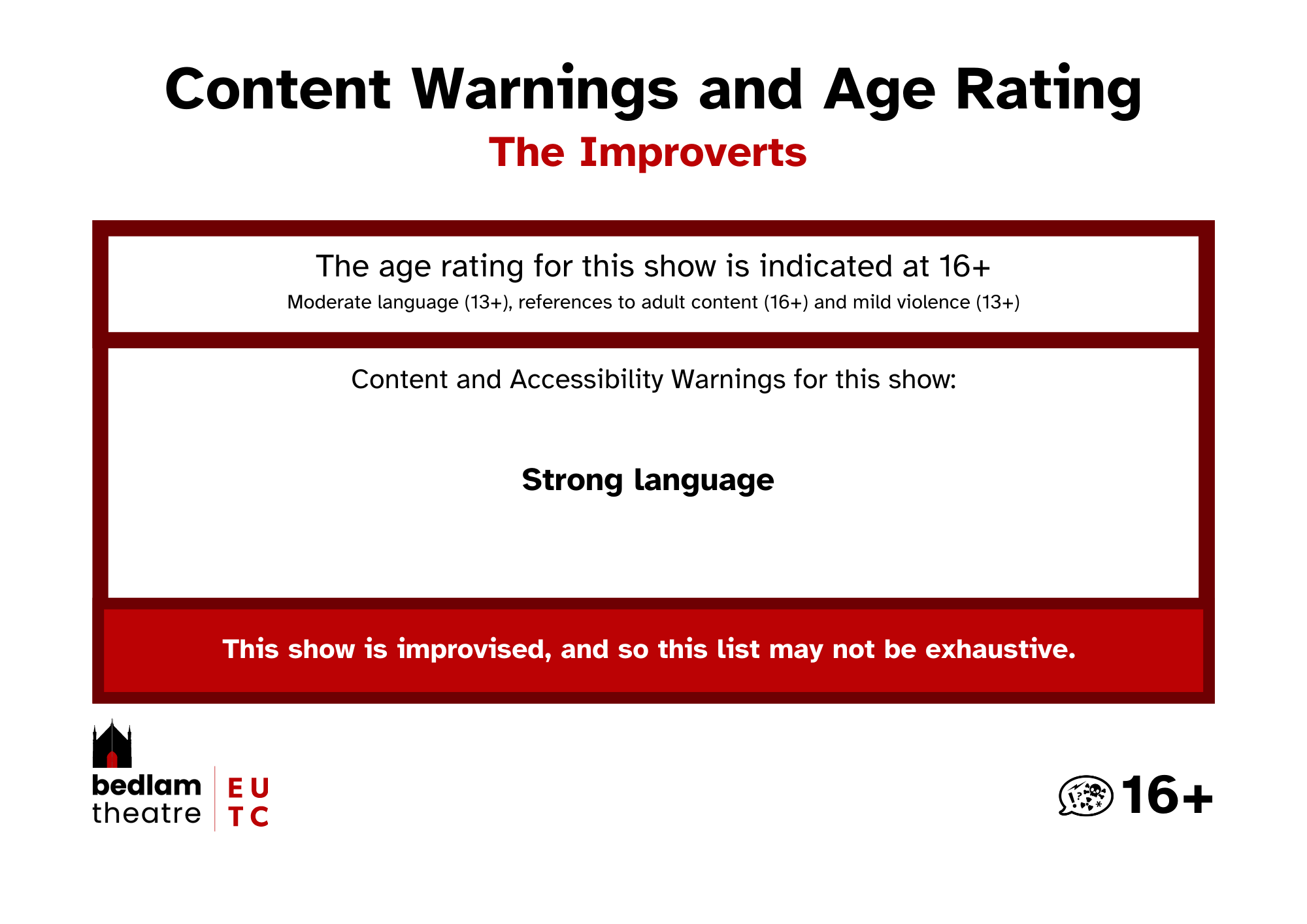 If you use a screenreader or otherwise find this page difficult to read, typed out versions of the Content and Accessibility Warnings are listed in every show's individual page.