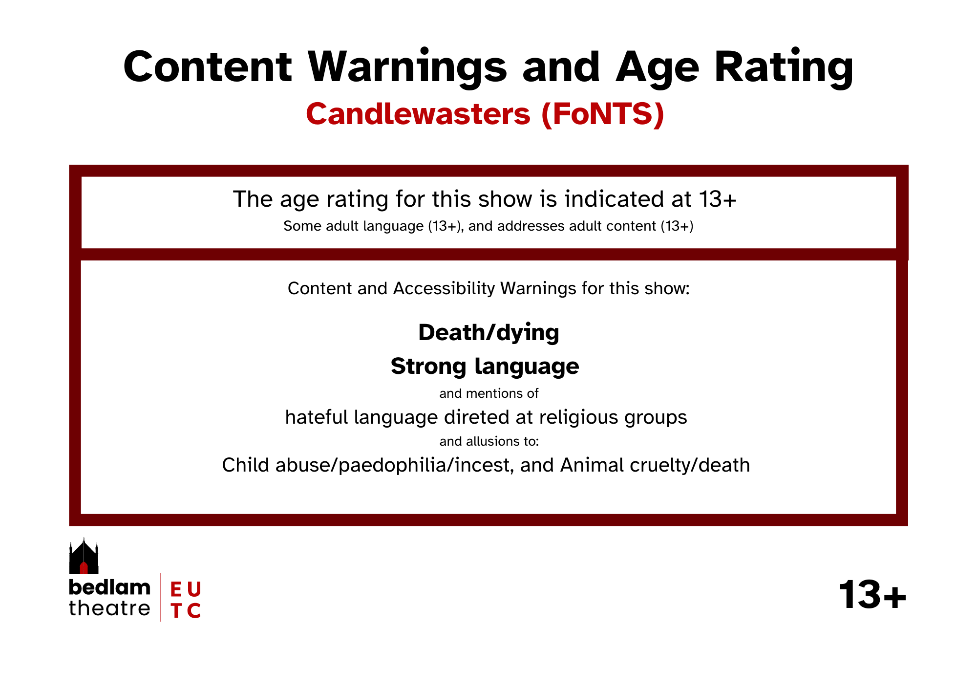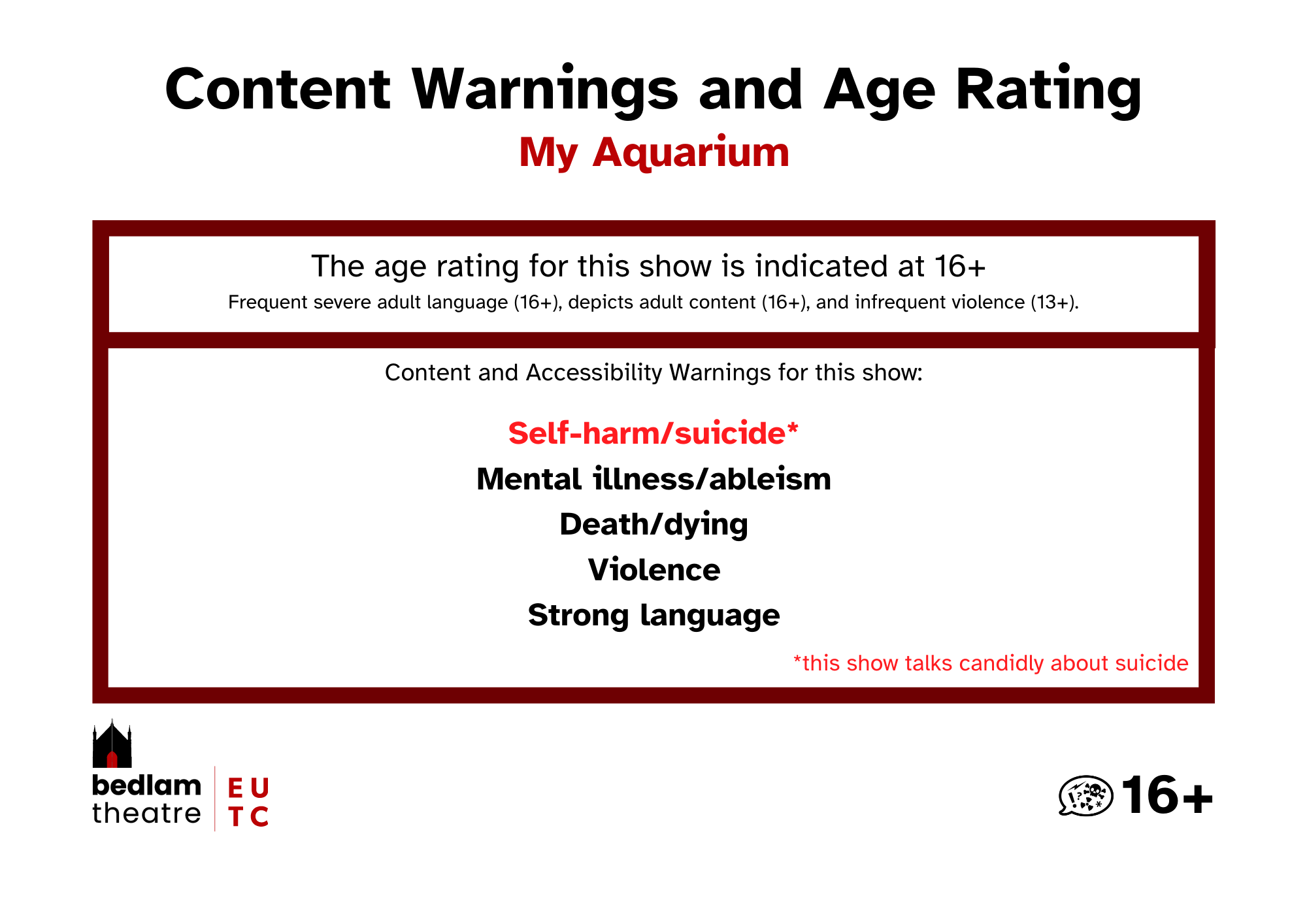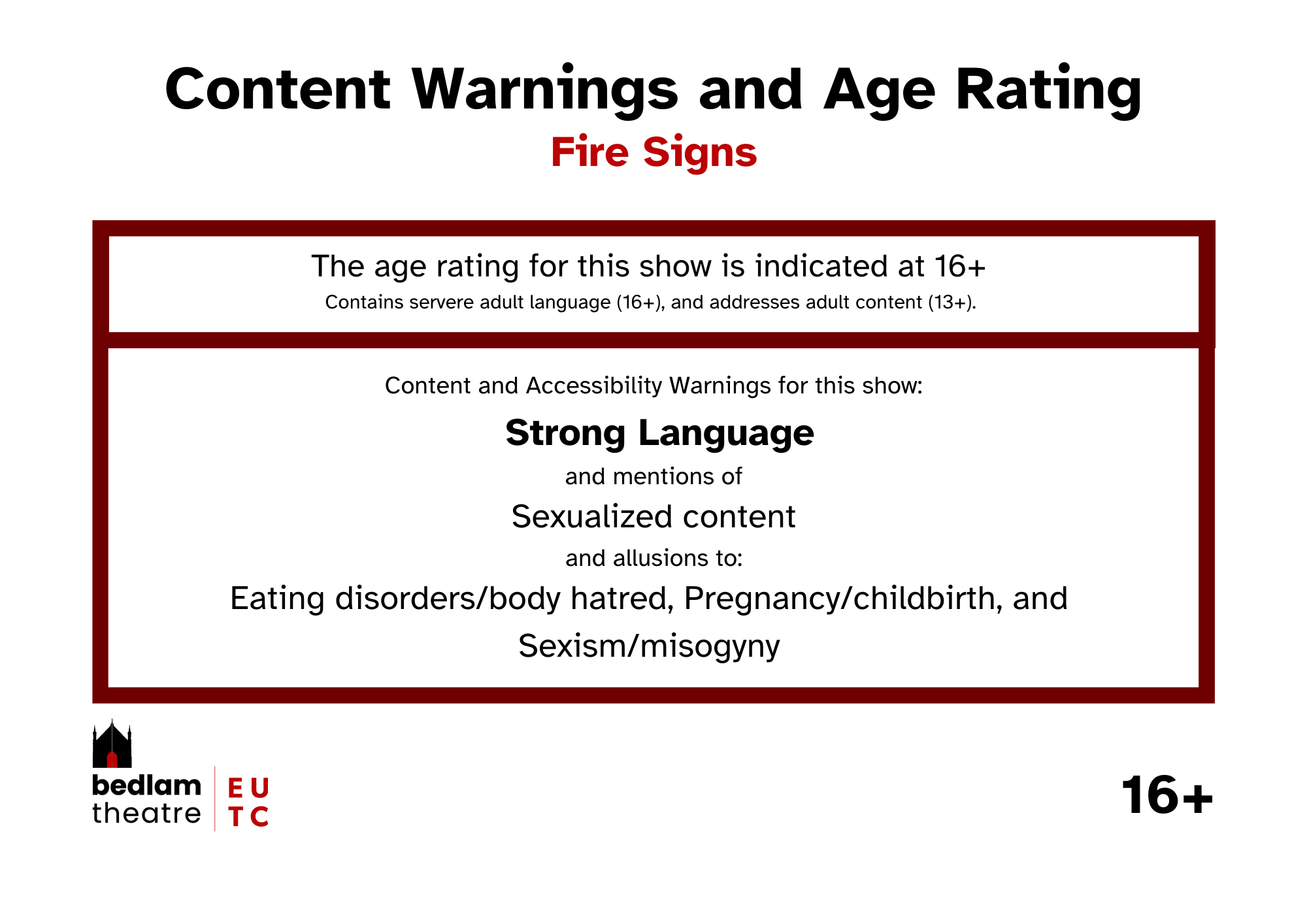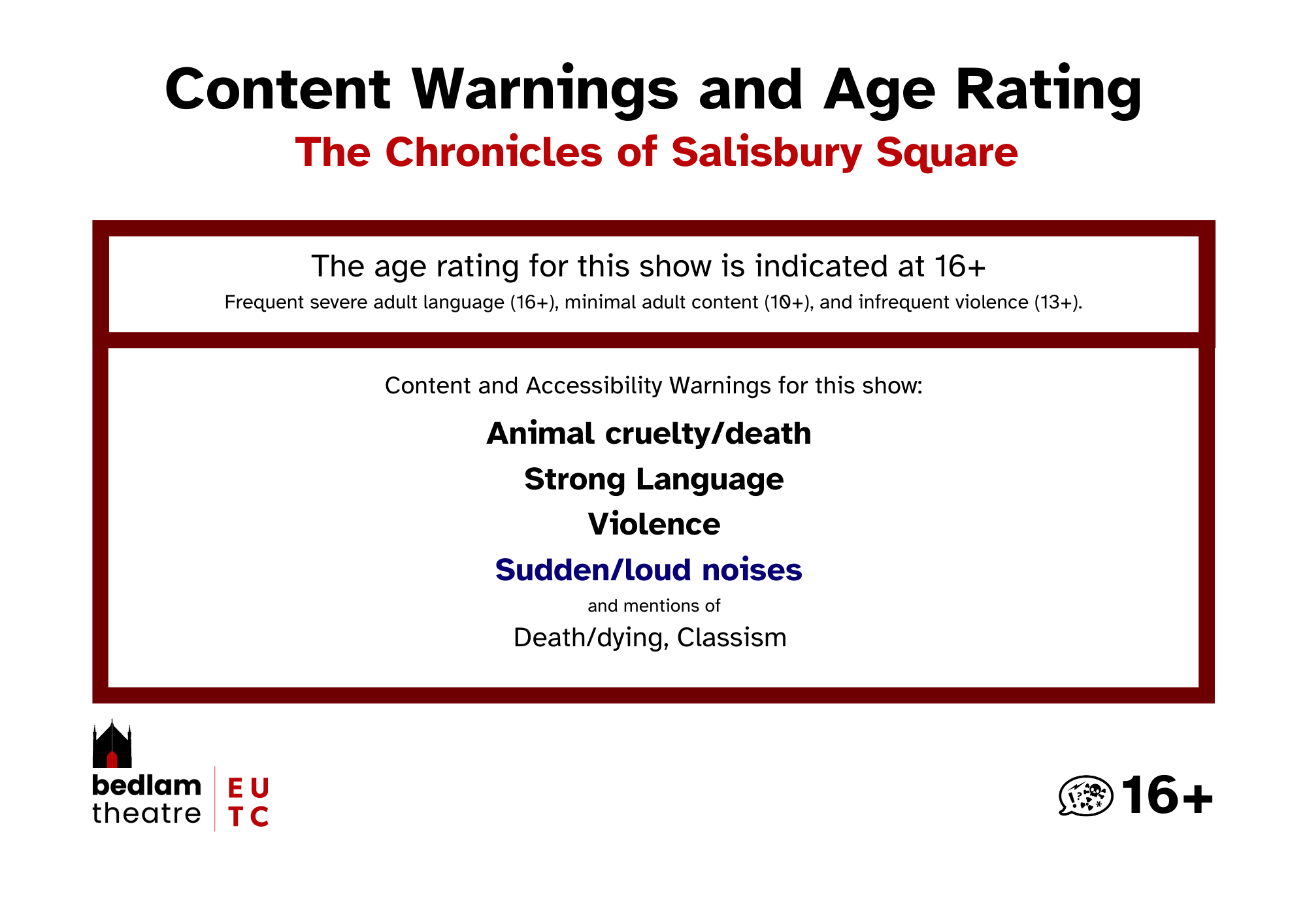 If you use a screenreader or otherwise find this page difficult to read, typed out versions of the Content and Accessibility Warnings are listed in every show's individual page.